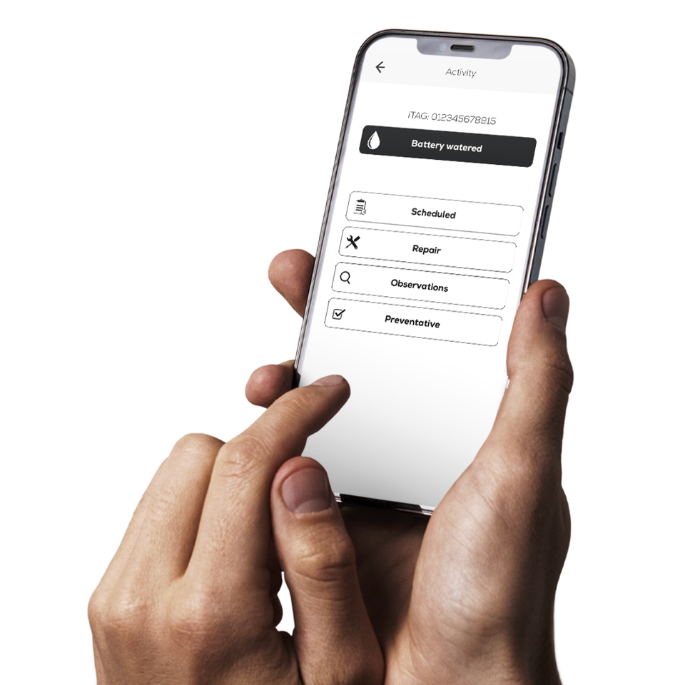 The iTAG™ Service-Tracking System uses barcode scanning technology to record battery maintenance activities quickly and accurately, bringing greater accountability to the service of your motive power fleet. iTAG™ saves money in your warehouse or DC by eliminating waste and increasing productivity. The iTAG™ system records tasks online to have complete visibility across your entire battery fleet using the mobile app. You can customise your online tracking portal and coordinate with multiple locations, all using your mobile phone. An iTAG™ is securely attached to each battery asset so that when each battery is serviced, the technician can scan the iTAG™ barcode on the mobile app, indicating that the required service has been performed or a repair is needed.